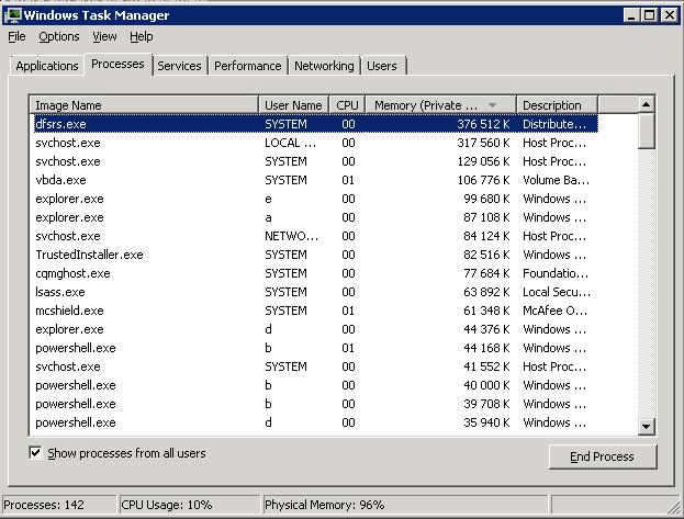 The problem manifests itself as follows: in the Task Manager we see that physical memory is busy by 95-99%.