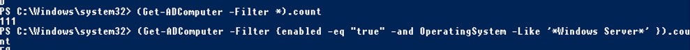(Get-ADComputer -Filter {enabled -eq "true" -and OperatingSystem -Like '*Windows Server*' }).count