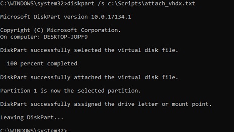 diskpart /s “C:\Scripts\attach_vhd.txt”