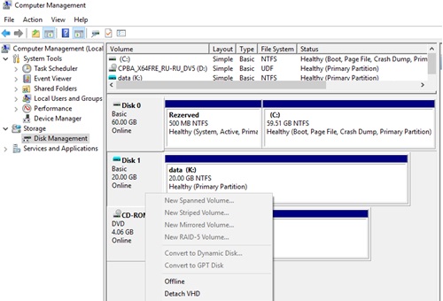 Since Windows 7 and Windows Server 2008 R2 users can create and mount virtual hard disk files (VHD/VHDX) directly from Disk Management console. These virtual disks look like separate physical disks in the system and can be used to store any data. An essential disadvantage of these disks is the necessity to mount VHD/VHDX files manually each time you reboot Windows. In addition, only local computer administrators have the permissions to mount VHD/VHDX files, ordinary users don’t have these privileges (those, the user must ask the administrator in order to mount a virtual disk file).