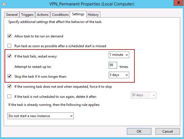 Thanks SO much for this guide. After upgrading from W7 to W10, this was bugging the hell out of me. Thank to this, I was even able to create a “VPN Alternate” task, which looks for an 809 Error Code (ERROR_VPN_TIMEOUT aka VPN server unresponsive) in the Event Log and then dial an alternate VPN server. I simply created the same Tricky Task as above, but edited this line of the XML query: