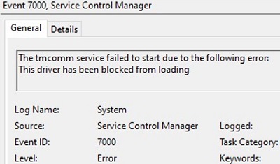 Event ID: 7000 ERROR_DRIVER_BLOCKED 1275 (0x4FB) This driver has been blocked from loading.