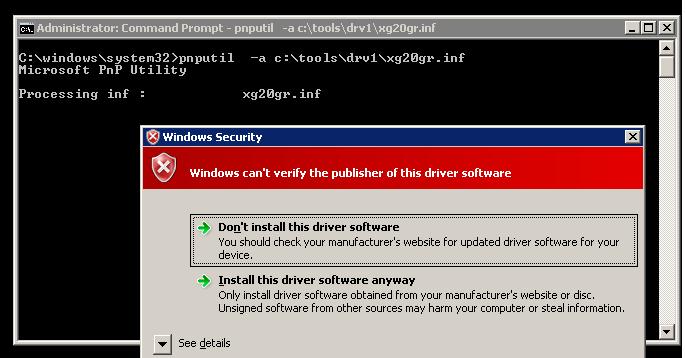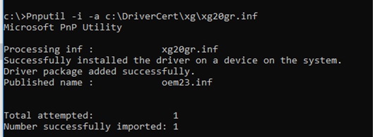 Pnputil –i –a C:\DriverCert\xg20\xg20gr.inf