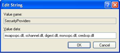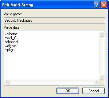 - Then in key HKEY_LOCAL_MACHINE\SYSTEM\CurrentControlSet\Control\Lsa add the line tspkg to the value of Security Packages attribute;