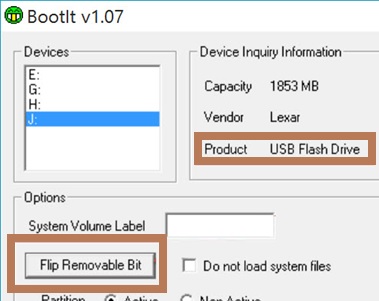 In the event that the BootIt utility did not help to change the RMB bit on a removable drive, try the following method based on the Hitachi Microdrive filter driver.