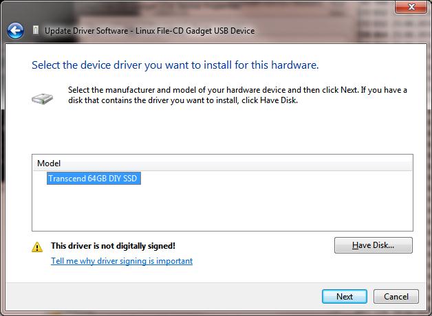 Microdrive_devdesc = "Trascend 64 GB DIY SSD"Installing Hitachi Microdrive Driver Instead of the Native USB Flash Driver