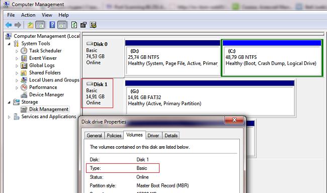 6. After successful updation, the disk drive’s label changes from removable to basic. To check you can go to :