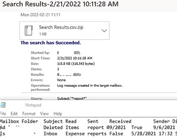 Get-Mailbox | Search-Mailbox -SearchQuery 'Subject:"report"'?-EstimateResultOnly|select Identity,ResultItemsCount,ResultItemsSize| Where-Object ResultItemsCount -gt 0