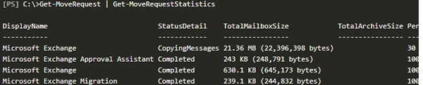 Get-MoveRequest | Get-MoveRequestStatistics