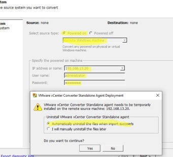 - VMware Converter connects to the specified server and installs VMware vCenter Converter Standalone Agent (