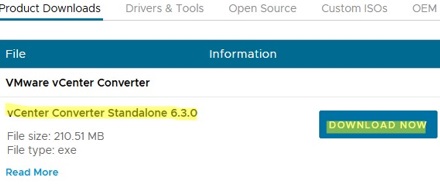 Recently, the latest release was VMware Converter Standalone 6.2, released in 2018. In February 2022, VMware removed this version of Converter from the list of available downloads on its website (significant vulnerabilities were found in previous versions) and promised to release a new version a little later. At the same time, no alternative for performing P2V conversions was offered.