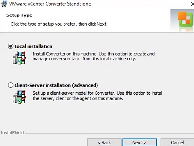 Local installation – installs all the necessary components for managing conversion tasks on the local computer (we use this mode) and Client-Server installation — allows you to separately install a server, client, or agent on a computer; - Create a new conversion task: File-> New-> Convert machine.