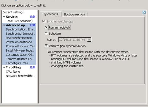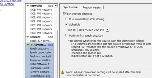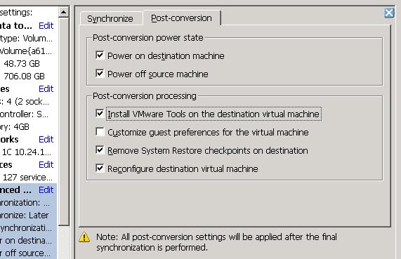 VMware Converter: Synchronize changes when performing P2V or V2V Conversion