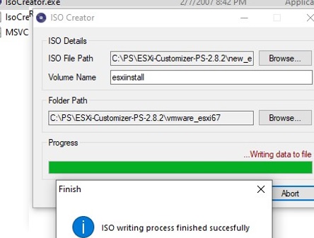 IsoCreator.exe); - Specify the directory with the ESXi installation files and the name of the ISO file;