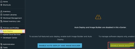 In vCenter Server, you can use the built-in Image Builder to modify your ESXi installation images. This service is disabled by default. Enable it via vCenter -> Auto Deploy -> Enable Image Builder.