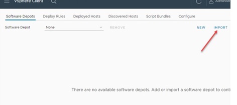 Now you need to create a new Software Depot and import your ISO image, vib (zip) driver files, and the necessary ESXi updates into it.