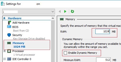 If you are installing Windows 10/11 or Windows Server 2016/2019 (and older OS versions) in a virtual machine, make sure you have allocated enough RAM to the VM. In my case, only 512 MB of memory was allocated for the VM on the Hyper-V server, and the Enable Dynamic memory option was checked for it with a possible Memory overcommitment situation. Increase the amount of memory allocated to the VM to at least 1024 MB, disable Dynamic Memory, and restart the Windows setup.