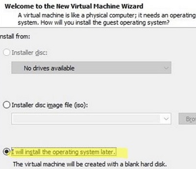 I will install the operating system later”; - Mount the Windows installation ISO image to a virtual CD/DVD drive after creating VMware VM;