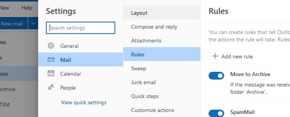 There are two types of Inbox rules that can be configured in Outlook: client-side nd server-side rules.