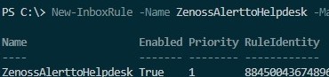 New-InboxRule -Name ZenossAlerttoHelpdesk -Mailbox NYadmin -SubjectContainsWords "Zenoss HW Alert" -ForwardTo "Helpdesk"