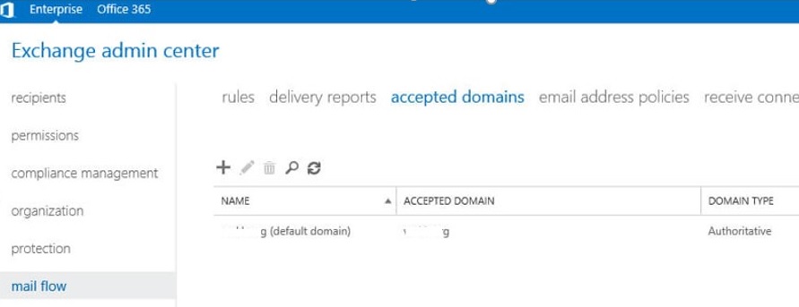 - Open the Exchange Admin Center control panel for Exchange Online (https://outlook.office365.com/ecp);