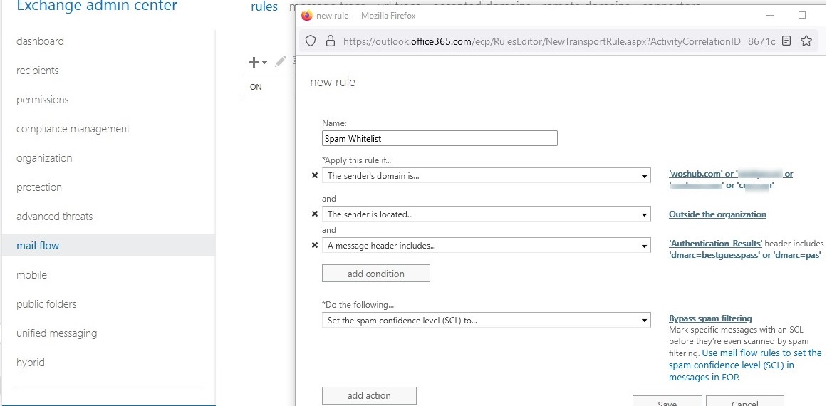 Authentication-Results, Header value:dmarc=passordmarc=bestguesspass; - In the Do the following select Set the spam confidence level (SCL) -> Bypass spam filtering;