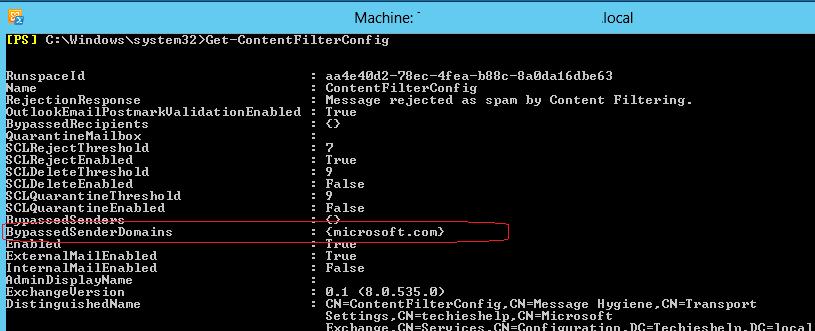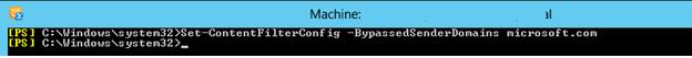 Set-ContentFilterConfig -BypassedSenderDomains microsoft.com