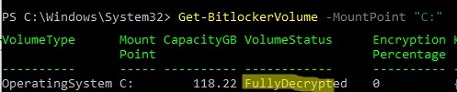 You can also use PowerShell to disable BitLocker protection for a specific volume: