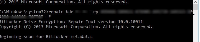 repair-bde F: G:-rp?<Recovery Password> –Force