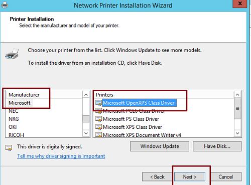In the Printer Installation Wizard, check that a network printer is being installed (Add a TCP/IP or Web Services Printer by?IP address or hostname).