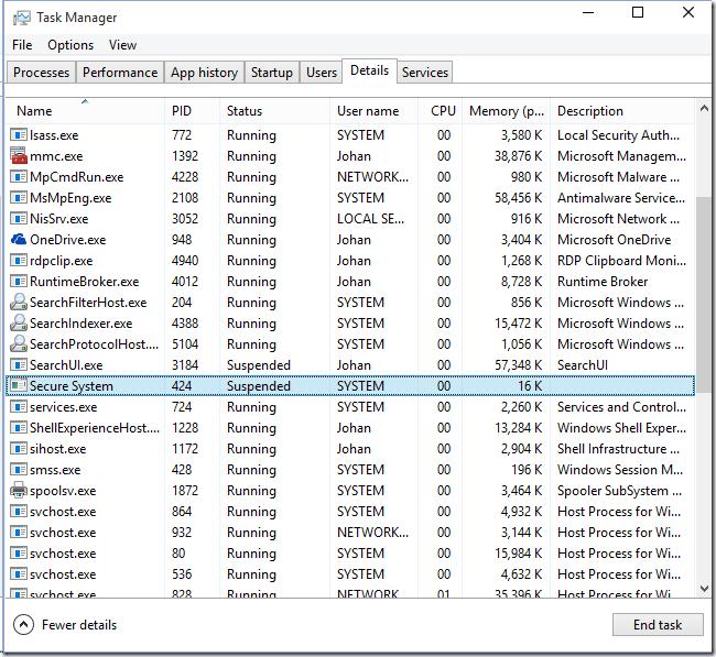 You can make sure that the VSM is active if Secure System process is present in the Task Manager.