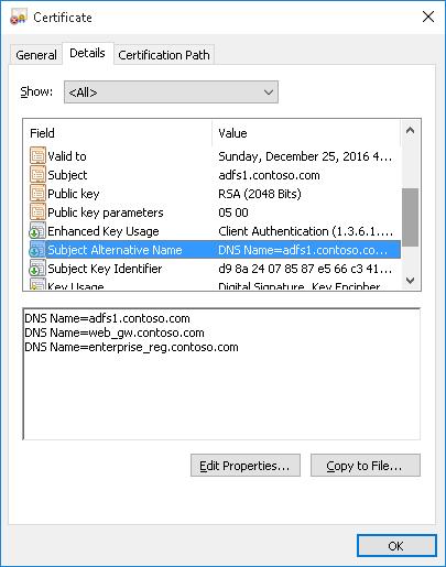 adfs1.contoso.com - Subject Alternative Name (DNS):