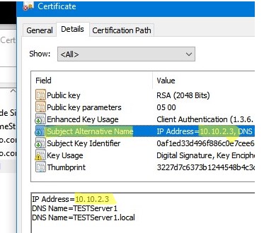 As you can see, the Subject Alternative Name field now contains the IP address of the host and its DNS names.
