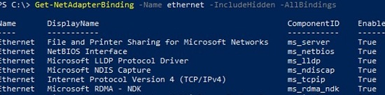 Get-NetAdapterBinding -Name ethernet0 -IncludeHidden -AllBindings