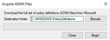 The Policy Plus functionality significantly exceeds the capabilities of the built-in policy editor gpedit.msc. The tool allows you to link the administrative template files (admx), and if necessary, you can download the latest admx file versions from the Microsoft site (Help -> Acquire AMDX Files). This operation is a must-do for users of Home editions of Windows 10, since most of the administrative template files are missing.