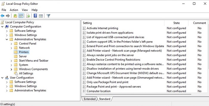 By default, all settings in the Administrative Templates section are set to Not configured. Most GPO settings have only three options available: Enabled, Disabled, or Not configured.