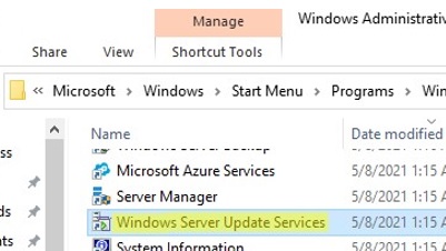Install-WindowsFeature -Name UpdateServices, UpdateServices-WidDB, UpdateServices-Services, UpdateServices-RSAT, UpdateServices-API, UpdateServices-UI -IncludeManagementTools