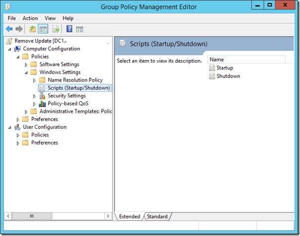 To do it, create a new GPO object linked to the necessary OU, AD site or computer group. Then create a new startup script with the wusa.exe command in the section Computer Configuration -> Policies -> Windows Settings -> Scripts (Startup/Shutdown).