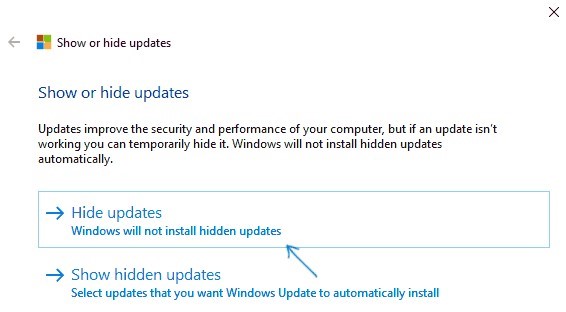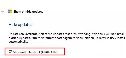 - After that, this update won’t be installed in Windows automatically via Windows Update. You can remove the hidden update by selecting it in the Show hidden updates.