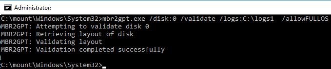 mbr2gpt.exe /disk:0 /validate /Logs:C:\logs /allowFullOS
