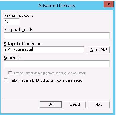 Here you specify the FQDN name of your SMTP server. Click the Check DNS button to make sure that the DNS record is valid.