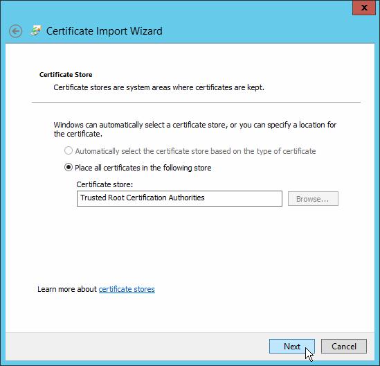 Let’s test the group policy settings? by running gpupdate /force?on the client. Verify that your certificate has appeared in the list of trusted certificates. It can be done either in the Manage Certificate snap-in (Trusted Root Certification Authorities -> Certificates) or in the Internet Explorer settings (Internet Options -> Content -> Certificates -> Trusted Root Certification Authorities).