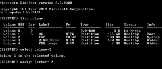 List volBy the labels and sizes of disks, you can determine the drive letter of the partition on which Windows is installed. .