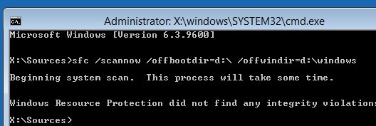 sfc /scannow /offboot=d:\ /offwindir=d:\windows