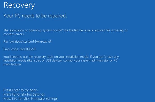 Let’s consider one more common Windows 10 boot error that occurs due to the damaged or missing winload.efi file. The problem manifests itself in the following: Windows stops booting with a BSOD and the error message appears on the boot screen: