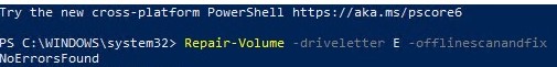 PowerShell 4.0 introduced a separate Repair-Volume disk check cmdlet. This cmdlet is the PowerShell replacement for the chkdsk command.