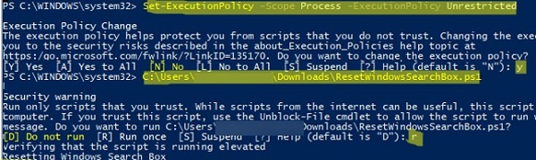 - Download the ResetWindowsSearchBox.ps1 script http://www.microsoft.com/download/100295;