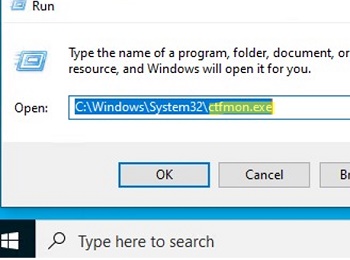 - Check if the ctfmon.exe process is running in your session. This is a built-in Windows process that manages the alternate user input and the Office Language Panel (Touch Keyboard and Handwriting Panel Service). If this process is not running or stopped, you simply won’t be able to type characters in the Start Menu search bar. To start the process manually, press Win +R and run the command: