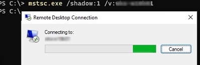 The built-in Remote Desktop Connection tool (mstsc.exe) is used to shadow connect to the user’s session. The command format is: