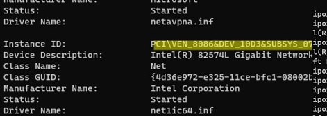 $InstanceId = “PCI\VEN_8086&DEV_10D3&SUBSYS_07D015AD&REV_00\000C29FFFF66A80700”